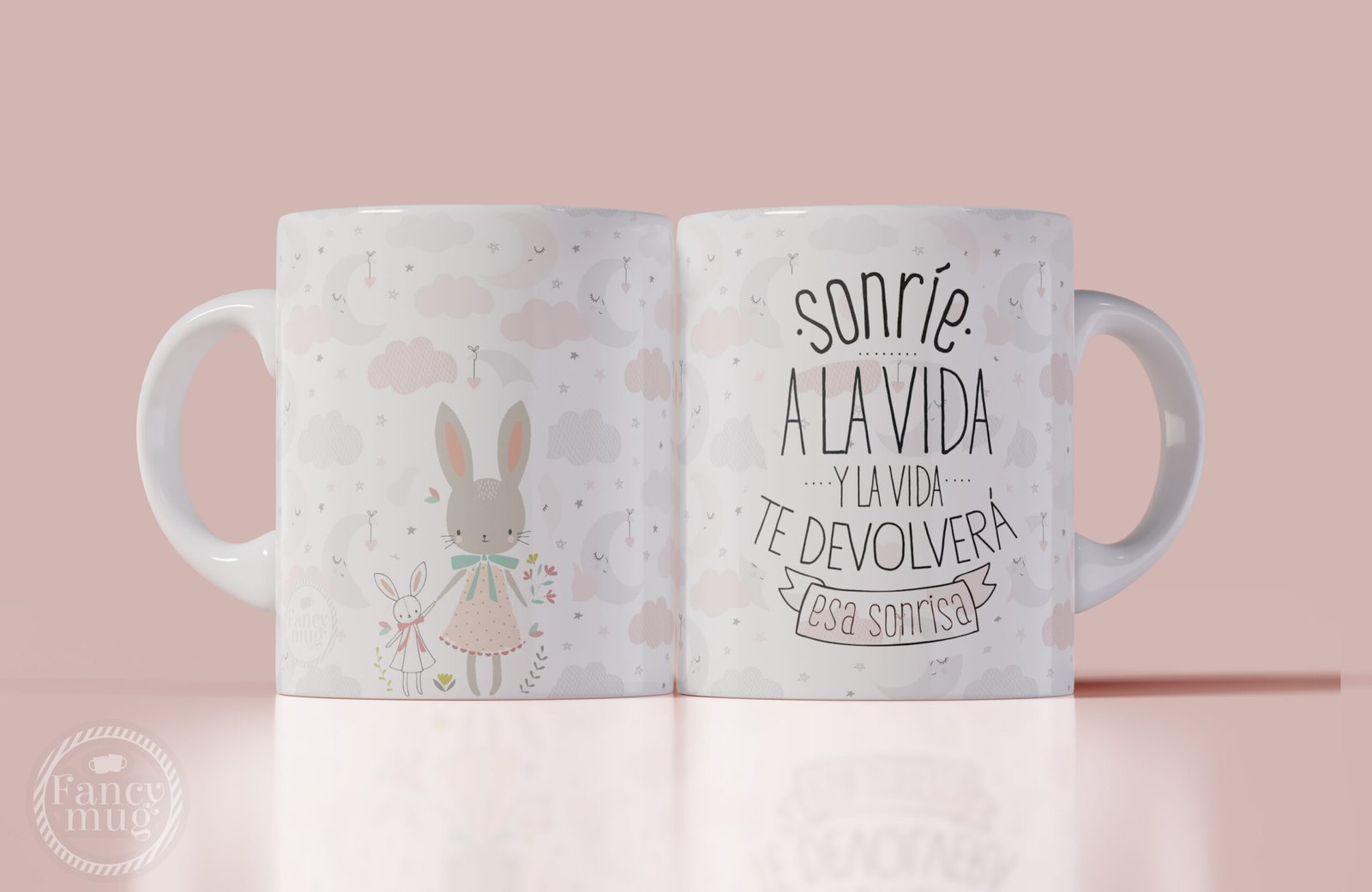 Esta taza Bunnies con frase inspiradora fue diseñada para acompañar cada mañana con un recordatorio simple pero poderoso: sonreír.